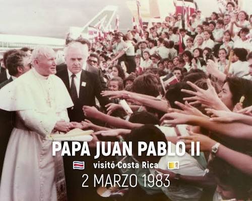 Juan Pablo II visitó Costa Rica del 2 al 6 de marzo de 1983, siendo el primer y único Papa en visitar el país. Como parte de su gira por Centroamérica, llegó al aeropuerto Juan Santamaría, besó el suelo costarricense y fue recibido por el presidente Luis Alberto Monge. Ofreció una misa multitudinaria en La Sabana y visitó el Hospital Nacional de Niños, destacando al país como una nación de paz.